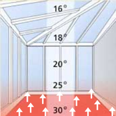 am Morgen in wenigen Minuten der Wintergarten wieder auf die gewünschte Temperatur gebracht wird. Dies schafft kein konventionelles Heizsystem.
